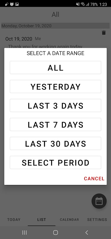 - On the list screen, you can check the diary thanks to the creation by date.