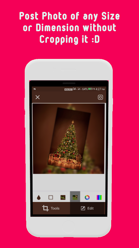Post photo to IM without cropping it. Add Blurred Background, background colors, color gradients or frames. It will possibly posted automatically on few devices, other needs to post manually.