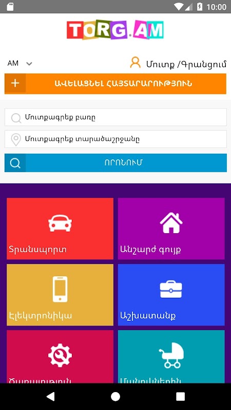 Бесплатная доска объявлений TORG.AM предоставляет прекрасную возможность отыскать нужные товары/услуги, продать либо обменять имущество и товары.