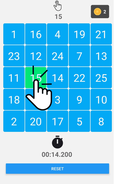 Touch 25 là một trò chơi đơn giản, nhịp độ nhanh, thử thách tốc độ, sự tập trung và phản xạ của bạn. Nhấn các số từ 1 đến 25 theo thứ tự — nhanh nhất có thể. Đơn giản vậy thôi... hay không?