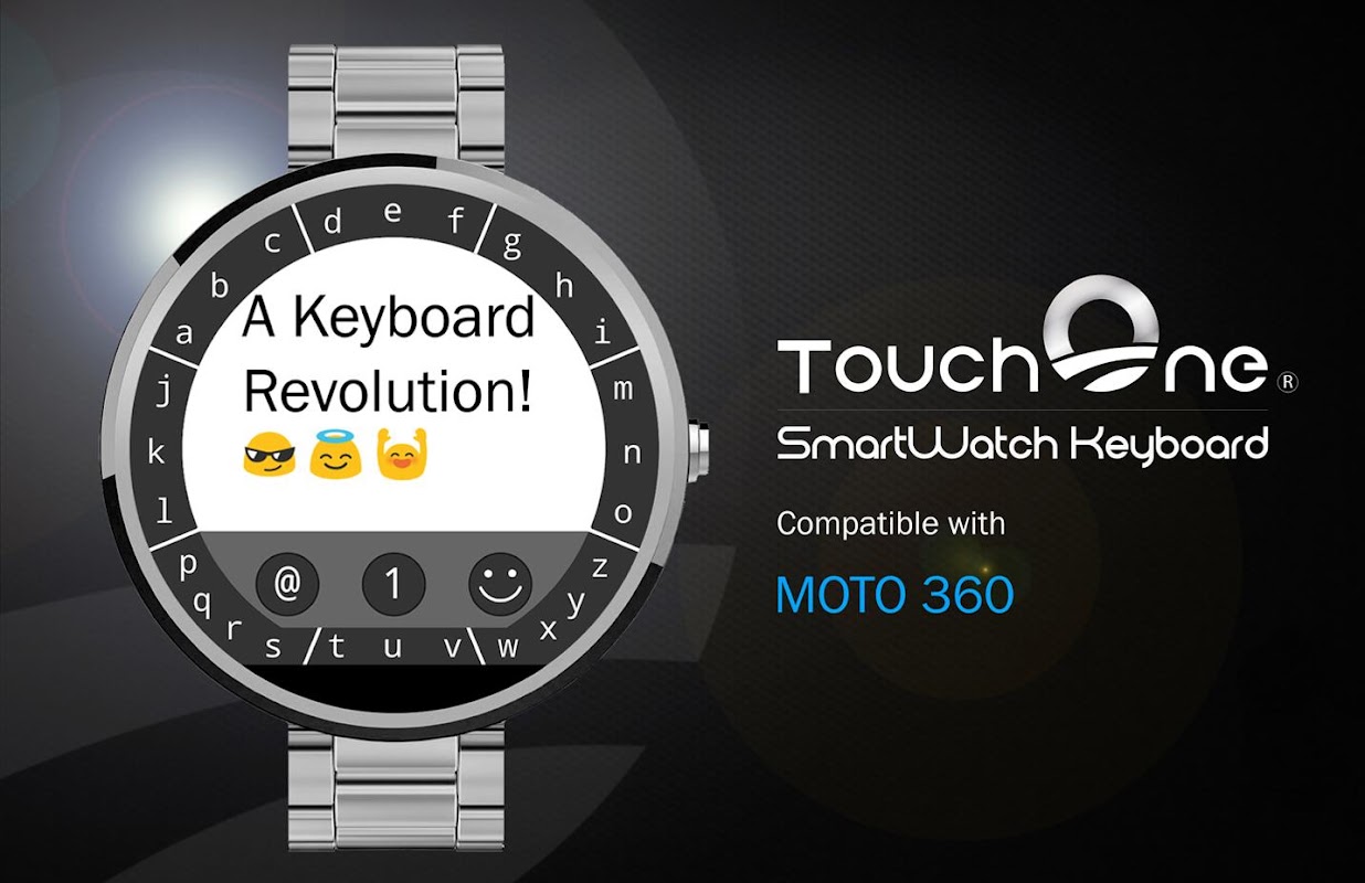 The TouchOne Smartwatch keyboard makes typing messages on a smartwatch both fast and intuitive. The TouchOne keyboard is also the first full keyboard solution on the Google Play Store with number, punctuation and emoji support.