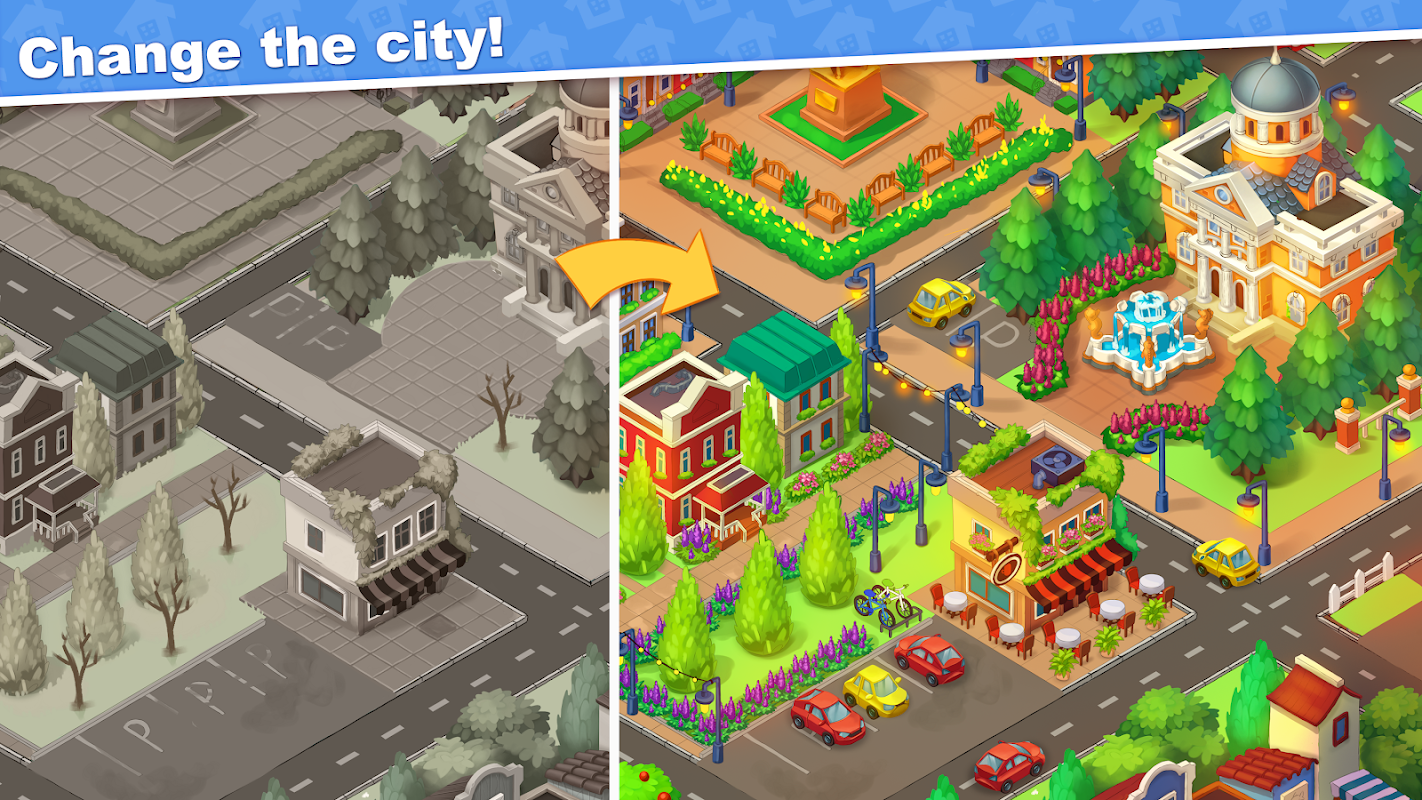Try yourself as a city Mayor and flip old shabby areas into masterpieces of modern architecture design! Decorate your dream town in your personal style with “Town Blast: City Restoration - Match 3 Puzzle Game!”!