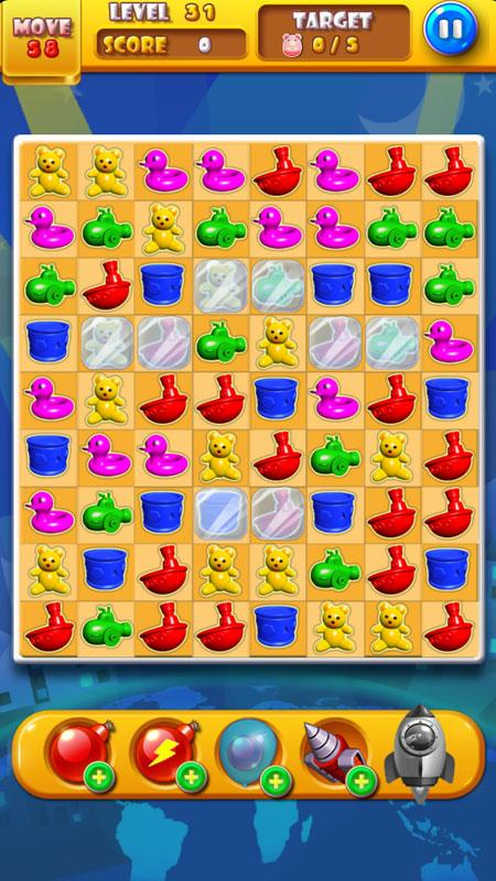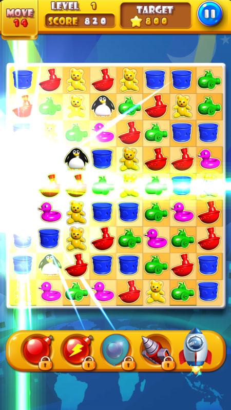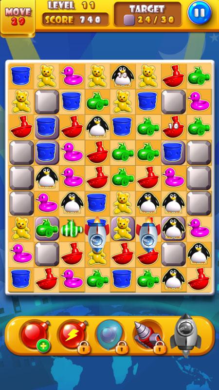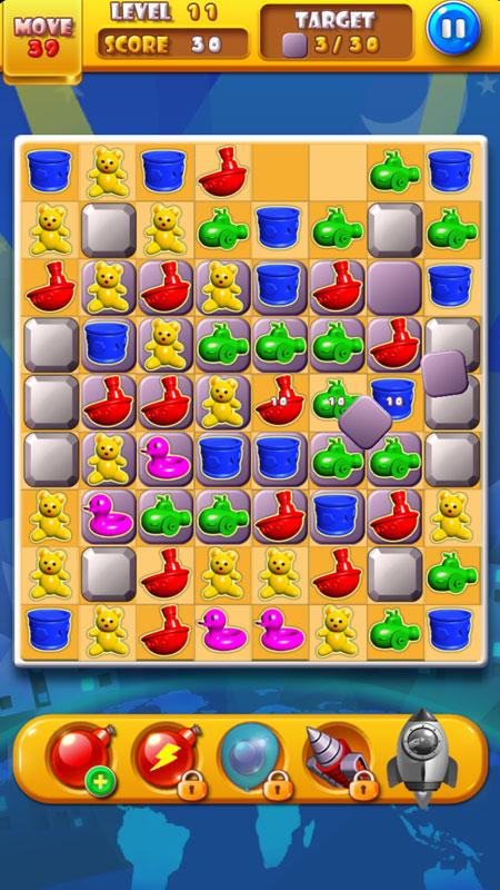 1. Match three or more same toys.