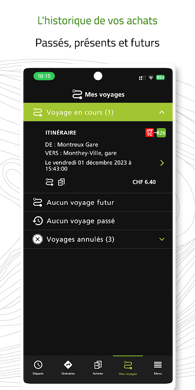 TPC Mobile cho phép bạn lên kế hoạch cho chuyến đi của mình và mua vé vận chuyển trên toàn bộ mạng lưới TPC, Mobilis, CFF, Car Postal, TMR và RegionAlps.