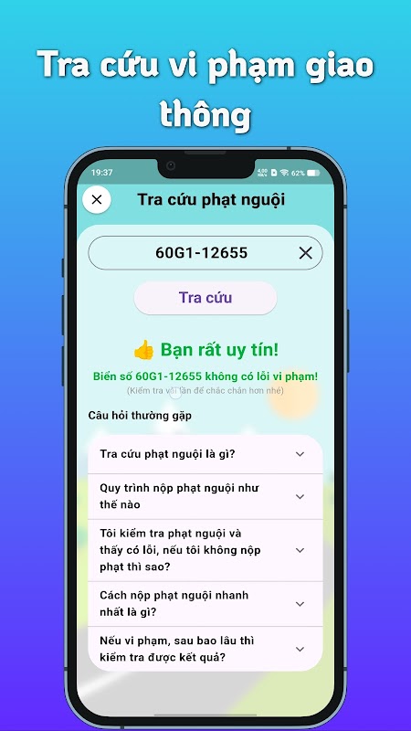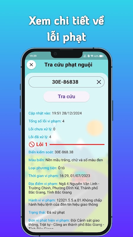 👉 Bắt đầu từ ngày 06/01/2019, Cục Cảnh báo giao thông đã phát triển khai hệ thống kiểm tra phạm vi giao thông trực tuyến trên nền tảng web. Để quá trình này thuận tiện hơn, “Trà Cứu Phạt Nguội 2025” cung cấp ứng dụng dễ sử dụng cho tất cả người lái xe tại Việt Nam để nhanh chóng xác minh tình trạng vi phạm giao thông của mình.