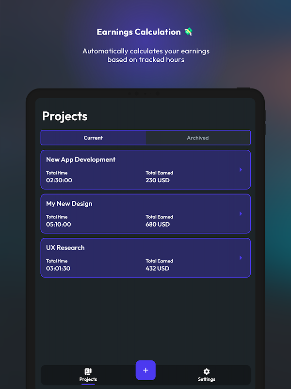 • Tính toán thu nhập: Tự động tính toán thu nhập của bạn dựa trên số giờ được theo dõi.
