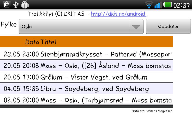 Denne applikasjonen er IKKE laget av Statens Vegvesen.