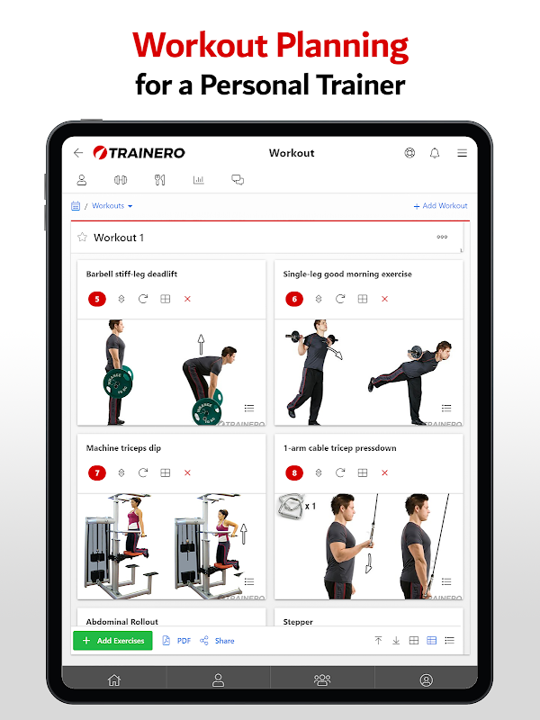 Xây dựng kế hoạch tập luyện tuyệt vời bằng cách sử dụng bộ sưu tập bài tập có hàng nghìn video và ảnh bài tập. Thật dễ dàng để tìm kiếm và khám phá. Với sự trợ giúp của Thuật sĩ tập luyện, bạn có thể tạo kế hoạch tập luyện trong vòng chưa đầy 60 giây.