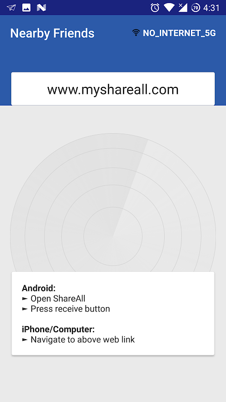 Automatically search friend nearby for file sharing. Friends not found? Don't worry. ShareAll has integrated BarCode/QR Code scanner. Just scan the QR code of sender and then you are done!