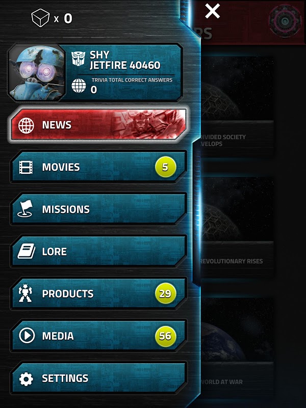 Vote in the polls, play the trivia game and read through the Transformers lore. Enter the experience to unlock art that can be used to customize your device.