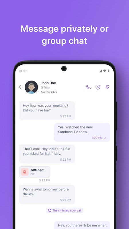 Tribe là tất cả về việc mang lại cho các đội từ xa linh hồn của họ bằng cách cho phép các tương tác nhanh chóng và không theo lịch trình, mà không phải xa lạ với các cuộc gọi thường xuyên và dài hơn. Điều này củng cố văn hóa cộng tác và cộng đồng trong các tổ chức và nhân bản hóa công việc từ xa của từng nhóm tại một thời điểm.