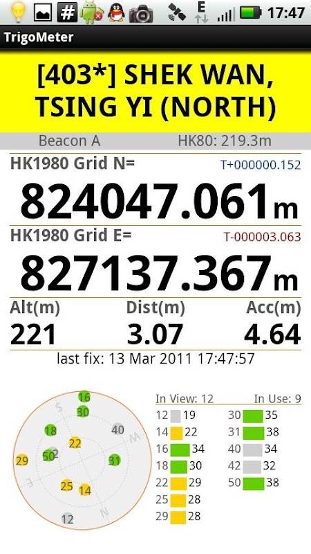 The only way to know how accurate your handset GPS can be, is to compare the coordinates it returns at a place with known coordinates. This application allows you to do a fairly casual comparison at the Trigonometrical/Traverse Stations in Hong Kong, with the ability to display the current WGS84/HK1980 Grid Coordinates, and also the satellite status. Please bear in mind that this application is for casual use only. You will need a survey grade GPS if you need to determine precise point positions, or please seek advise from professional land surveyors.