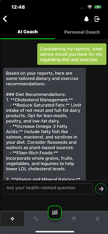 Huấn luyện viên sức khỏe AI: Hãy hỏi bất kỳ câu hỏi nào liên quan đến sức khỏe và huấn luyện viên thông minh của chúng tôi sẽ phân tích dữ liệu của bạn để đưa ra lời khuyên được cá nhân hóa phù hợp với nhu cầu của bạn.