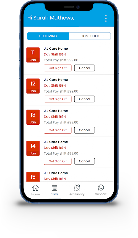 Ứng dụng của chúng tôi kết nối nhân viên điều dưỡng, y tế và chăm sóc với các bệnh viện và nhà chăm sóc.