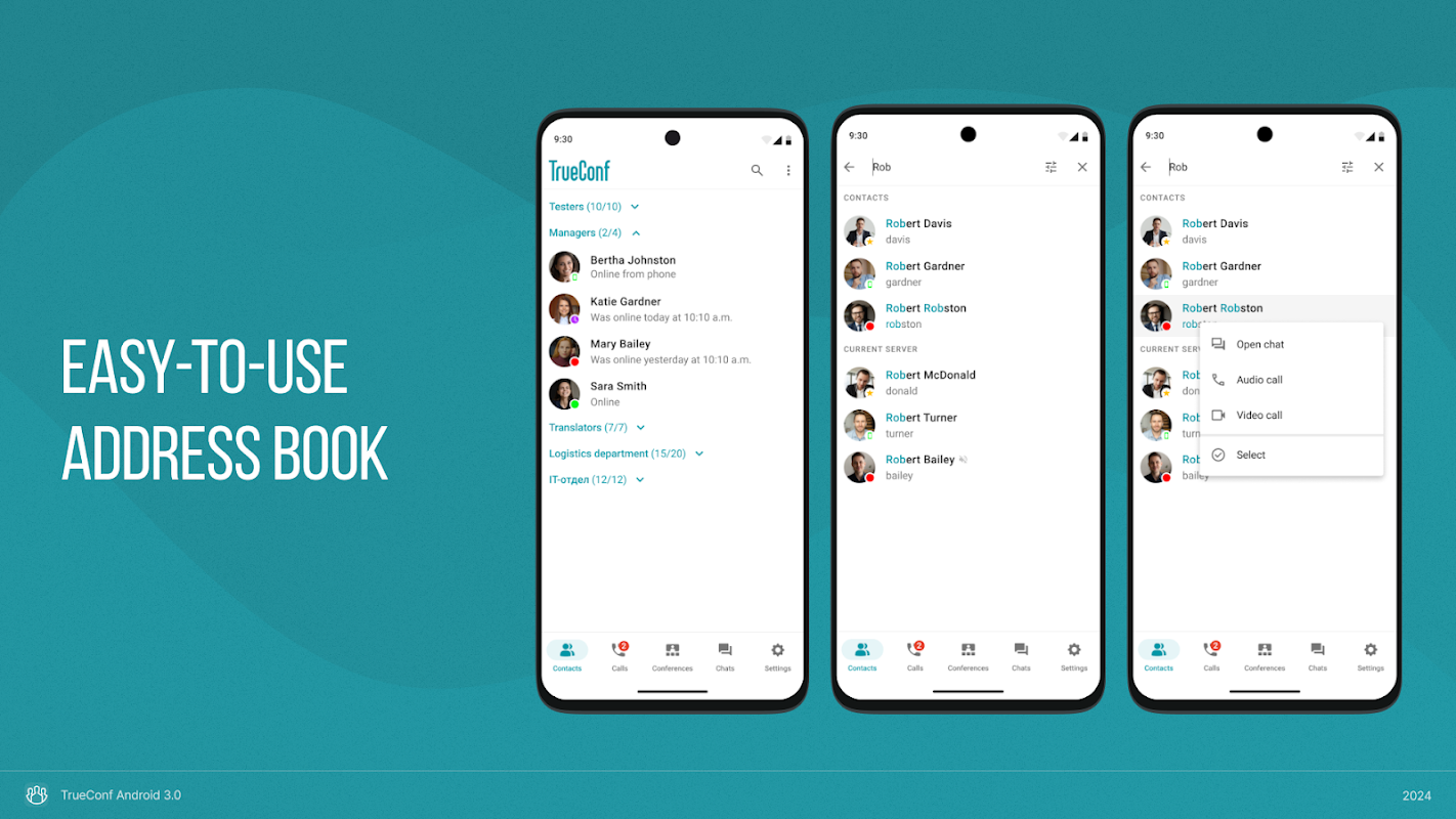 Gọi hình miễn phí, họp trực tuyến và trò truyện trên thiết bị di động Android và máy tính bảng! TrueConf tăng cường hiệu quả hợp tác trong công việc kinh doanh của bạn.