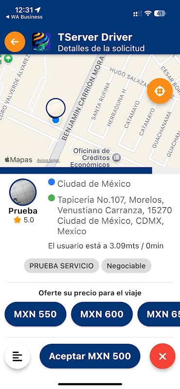 Tài xế của Tserver có thể chọn tuyến đường của mình và nhận ưu đãi từ hành khách. Khi nhận được lời đề nghị, người lái xe có thể chấp nhận, từ chối hoặc tăng số tiền đề nghị.