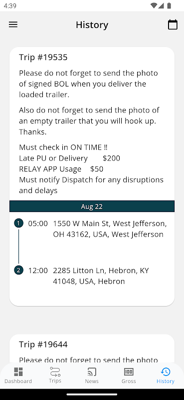 Xem lộ trình và địa chỉ của các điểm nhận hàng và giao hàng.