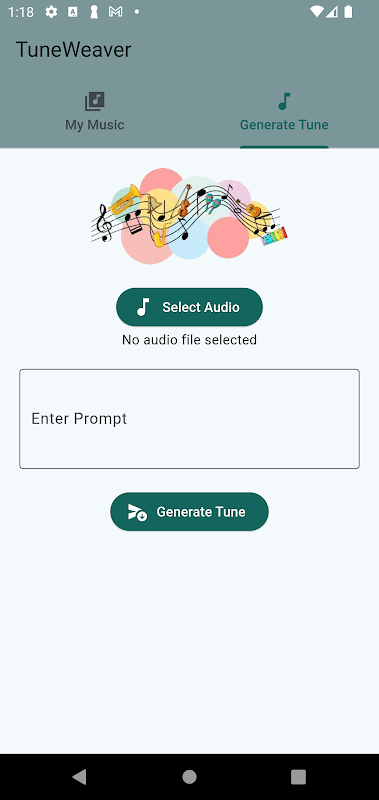 TuneWeaver là một ứng dụng Flutter cho phép người dùng tạo các giai điệu dựa trên các lời nhắc và giai điệu được cung cấp. Ứng dụng tích hợp nhiều chức năng khác nhau để xử lý việc phát lại nhạc, tương tác của người dùng và quản lý dữ liệu.