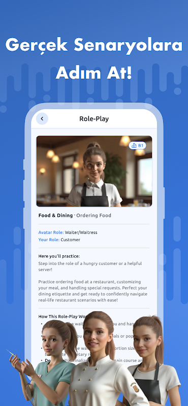 Tình huống nhập vai – Thực hành các tình huống thực tế như đặt món ăn, phỏng vấn xin việc và đặt chỗ.