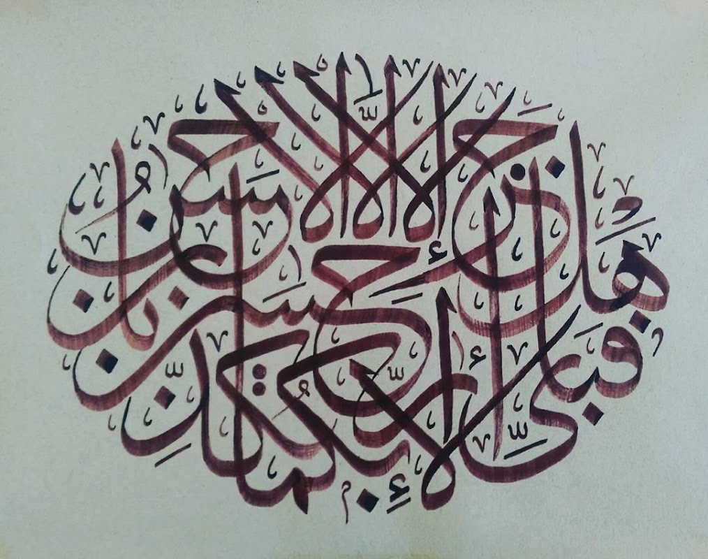 Câu 'bismillah' thường được dùng làm ví dụ về thư pháp của các nghệ sỹ nghệ thuật Hồi giáo. Lafaz bismillah sẽ không phải là một lafaz tầm thường nếu nó được trình bày với một nghệ thuật viết thư pháp đẹp. Khi viết thư pháp, mỗi từ phải được xem xét đến các hình thức tạo ra bộ chữ. Để câu chữ al-Quran đã được thực hiện như một bức thư vẫn có thể được đọc bởi người Hồi giáo.