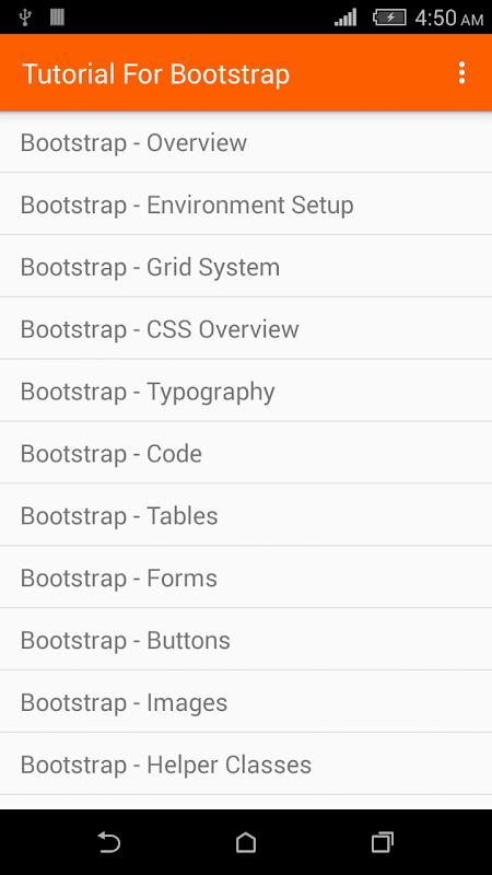 Orange Tutorials brings for you handy and best Tutorial For Bootstrap. Tutorial For Bootstrap App is user friendly, light weight, an easy-to-use for learning. The lessons in App are easy and effective. The app has following features: