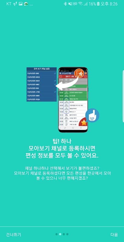 - 상태 알림바 지원(어플 실행없이 대기 편성 보기 지원)