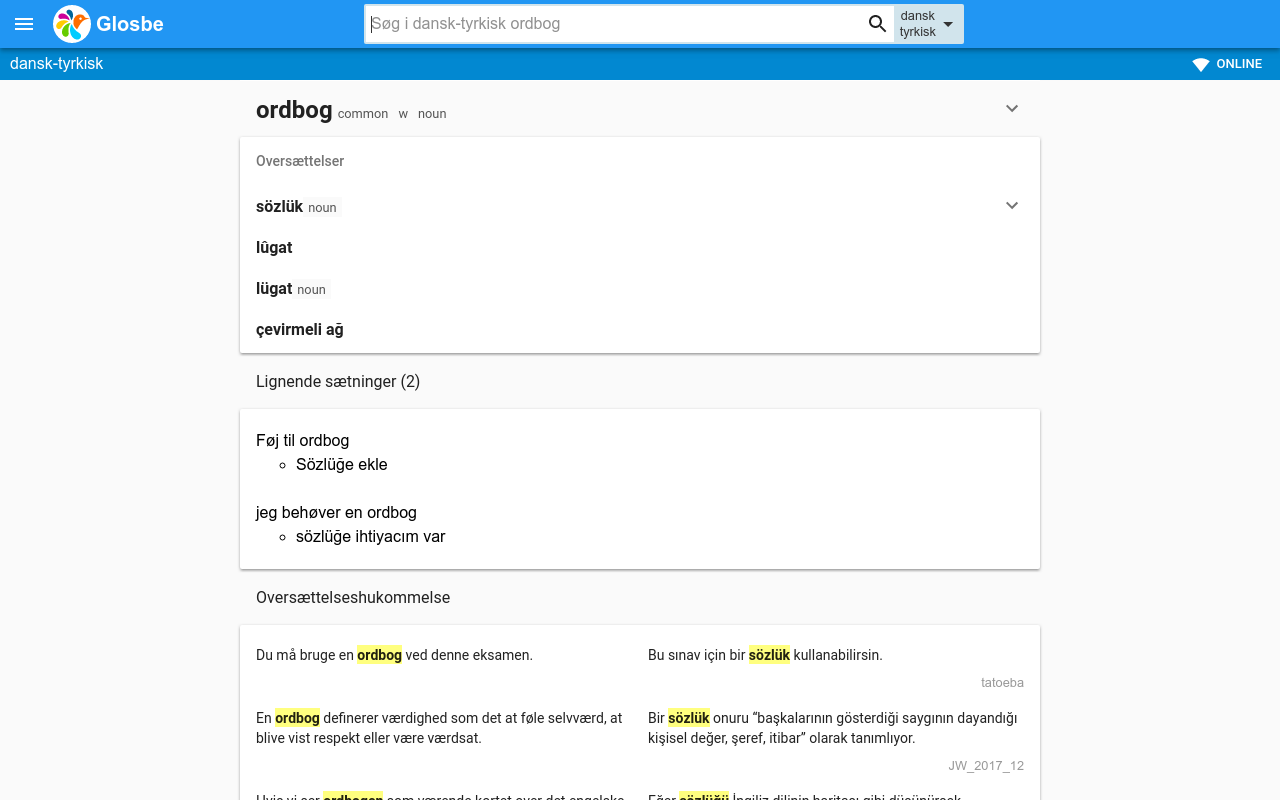 Glosbe - Multimedia Dictionary Tyrkisk-Dansk, Dansk-Tyrkisk