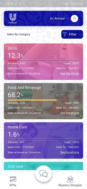 Việc quản lý sẽ thấy các đại lý trên bản đồ và có thể truy cập vào tất cả các tình trạng sản phẩm (bán hàng, mục tiêu) tháng hiện tại, cũng có thể truy cập vào danh sách các đại lý