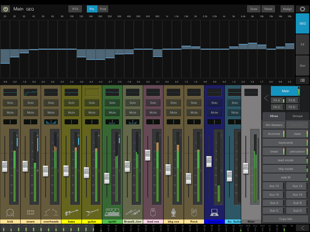 Universal Control cung cấp khả năng điều khiển cảm ứng toàn bộ bản phối của bạn, cùng với các chức năng như điều chỉnh động lực học, EQ, hiệu ứng, bản phối âm thanh kiểm âm, nhóm DCA, và thậm chí cả mạng và định tuyến AVB. Bạn cũng có thể điều khiển các tính năng nâng cao hơn như Scenes, Projects và kiểm soát quyền chi tiết—bao gồm cả giới hạn mức đầu ra tối đa.
