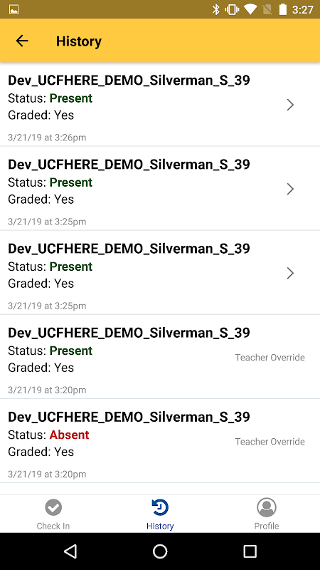 Trong các lớp học mà Khoa UCF hỗ trợ UCF Tại đây, sinh viên có thể đăng ký vào lớp chỉ bằng cách sử dụng điện thoại thông minh và máy ảnh của họ. Ứng dụng này cũng hỗ trợ đăng nhập Webcifts @ UCF, do đó không cần tạo tài khoản mới.