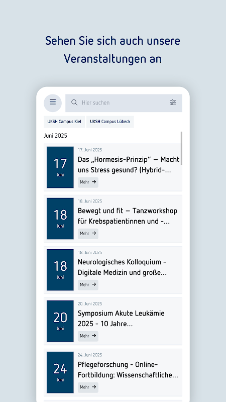 Ứng dụng UKSH: Ứng dụng bệnh viện cho Bệnh viện Đại học Schleswig-Holstein với các địa điểm của nó ở Kiel và Lübeck.
