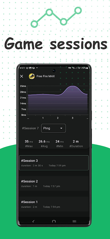 📉 Quản lý phiên nâng cao: Nhận số liệu thống kê chi tiết cho từng phiên chơi trò chơi, bao gồm mức sử dụng ping, FPS, nhiệt độ và RAM trong biểu đồ dễ đọc.