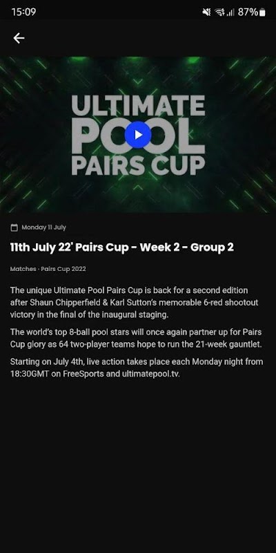 * Extensive live and archived ‘Video on Demand’ coverage from Ultimate Pool events which allows casting direct to your TV