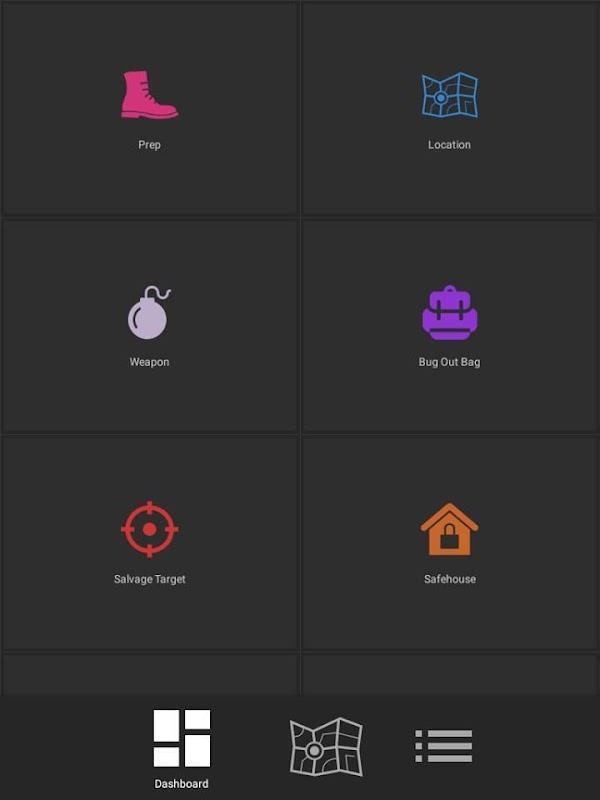 Manage customized locations of interest including salvage targets, caches, safe houses and fertile land, while tracking specific location information like threat level, value and size.