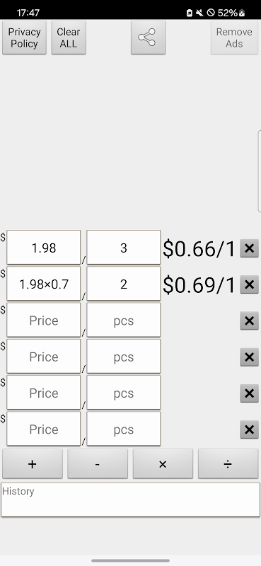 Giá cho mỗi đơn vị