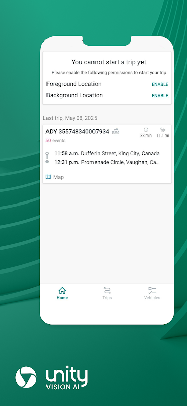 Lưu ý: Ứng dụng này được thiết kế cho những người lái xe sử dụng xe được trang bị camera hành trình VisionAI Hub. Liên hệ với người quản lý đội xe của bạn để biết thêm thông tin.