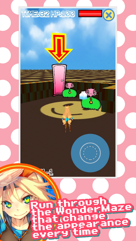 Run through the WonderMaze that change the appearance every time when you play. Dodge thin enemies !