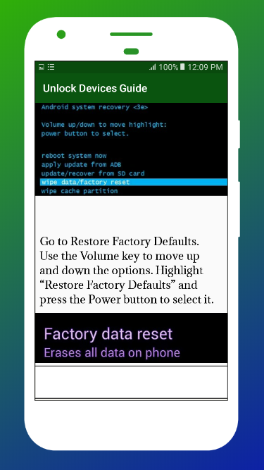 Unlock Samsung by factory data reset