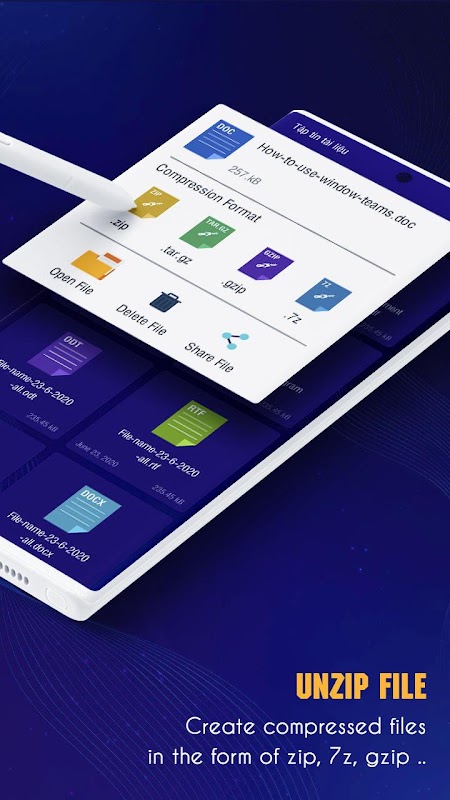 • Tiện ích giải nén tệp ZIP và trích xuất tệp RAR hỗ trợ hầu hết các định dạng phổ biến