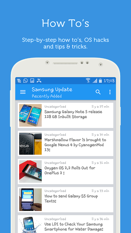In order to have an ideal and reliable device performance, Samsung Update strongly recommends using the latest Android updates for your device based on your device’s CPU frequency, Ram and internal Memory. Samsung update offers articles, blog posts, Android tips, tricks and news from top Android news sites all only to please its clients.