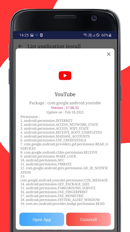 # Hiển thị tên ứng dụng, phiên bản, thời gian cập nhật, kích thước