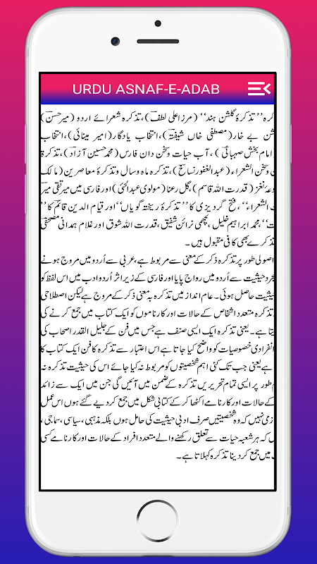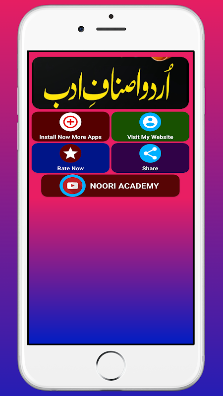 Ứng dụng này dựa trên cuốn sách nổi tiếng Urdu Asnaf-E-Adab của Ataurrahman Noori. Ứng dụng này sẽ hữu ích cho MA NET SET PET UPSC CSE và các kỳ thi cạnh tranh khác bằng tiếng Urdu.