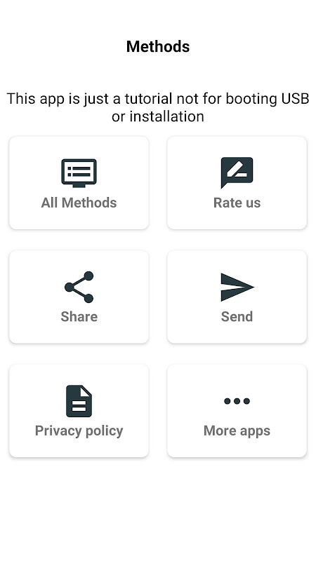 Tuyên bố miễn trừ trách nhiệm: Ứng dụng này chỉ dành cho mục đích giáo dục, cung cấp thông tin chi tiết về quy trình cài đặt Windows và khởi động USB. Nó hoạt động như một hướng dẫn và không thực hiện khởi động USB.