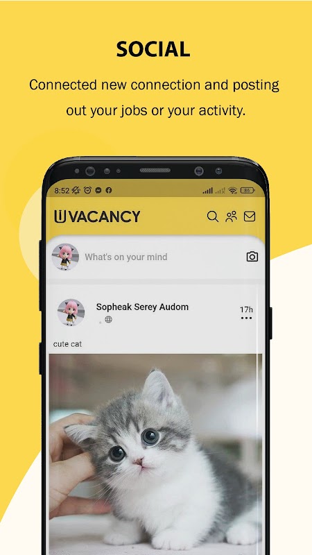 Nền tảng di động Uvacancy được phát triển bởi Nhà phát triển Campuchia, Cung cấp một cách thuận tiện để người dùng chia sẻ thông tin. hình ảnh, biểu đồ, đối tác kinh doanh và khám phá một nghề nghiệp mới với nhiều hạng mục công việc. Quan trọng hơn, người dùng có thể sử dụng thoải mái và dễ dàng tìm được công việc mơ ước của mình.