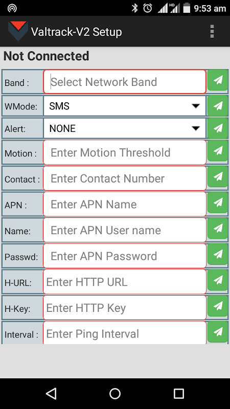 Ứng dụng này được sử dụng để thiết lập các thông số của VALTRACK-V2 GPS tracker