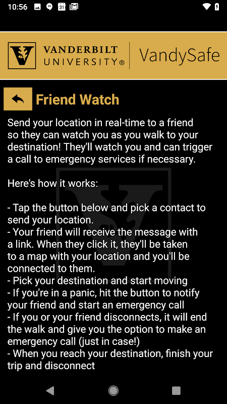 - Trò chuyện với An ninh: Giao tiếp trực tiếp với nhân viên an toàn tại Đại học Vanderbilt qua trò chuyện.