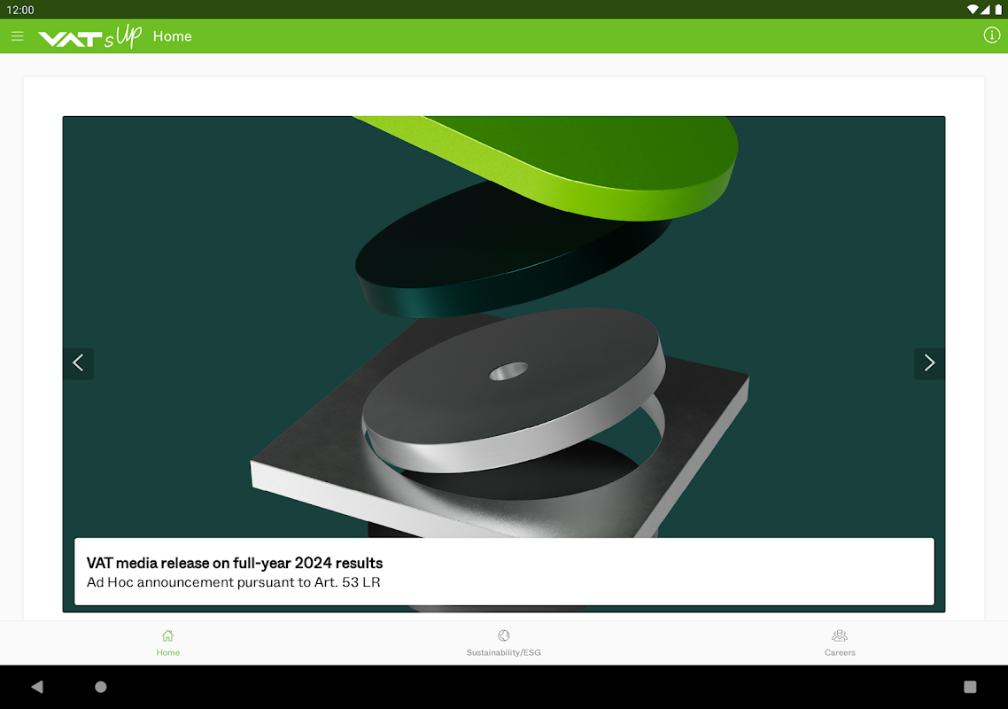 Trong VATsUp, bạn có thể tìm thấy thông tin và tin tức mới nhất từ VAT Group, khám phá các địa điểm và chương trình bền vững của chúng tôi, đồng thời xem các vị trí đang tuyển dụng trong cổng thông tin nghề nghiệp của chúng tôi. Tận hưởng khám phá VATsUp!
