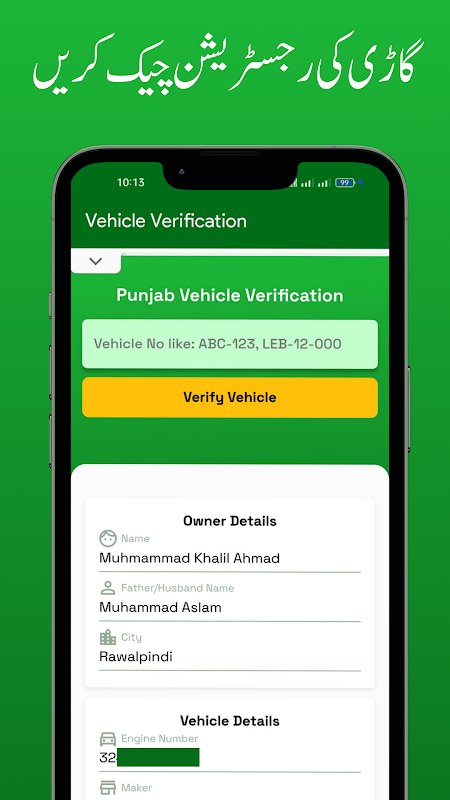 Đây là một ứng dụng không chính thức để xác minh chi tiết xe trên khắp Pakistan.