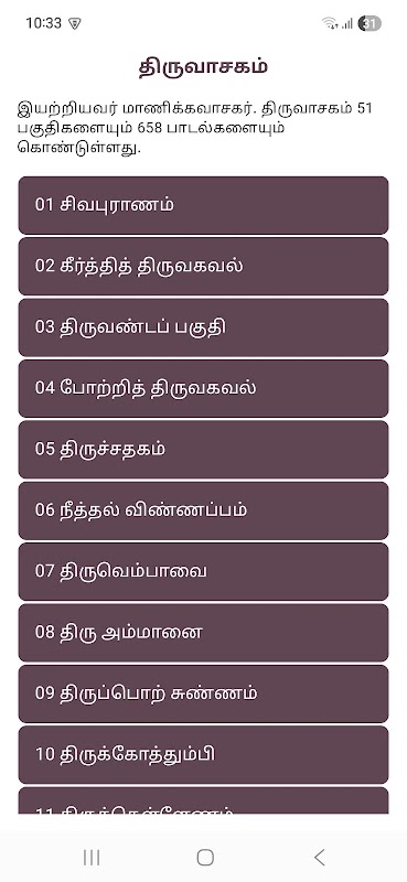 Bộ sưu tập các bài thánh ca mở rộng: Ứng dụng này cung cấp một thư viện kỹ thuật số phong phú gồm các bài thánh ca tôn sùng tiếng Tamil, bao gồm:
