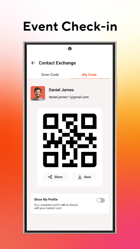 Không cần người tham dự mang theo tài liệu. Trao đổi danh thiếp và gửi hồ sơ bằng quét mã QR.